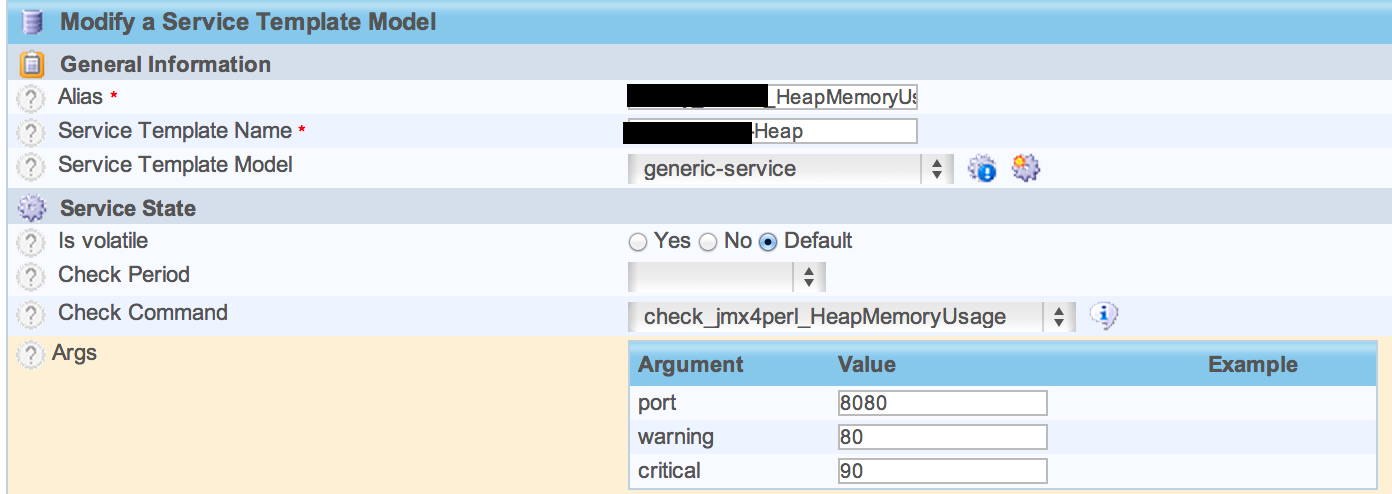 $ check_jmx4perl –url http://192.168.1.10:8080/jolokia –mbean java.lang:type=Memory –attribute HeapMemoryUsage –path used –base java.lang:type=Memory/HeapMemoryUsage/max –warning 80 –critical 90